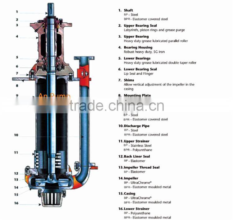 Centrifugal electric vertical sump pump for mining specification