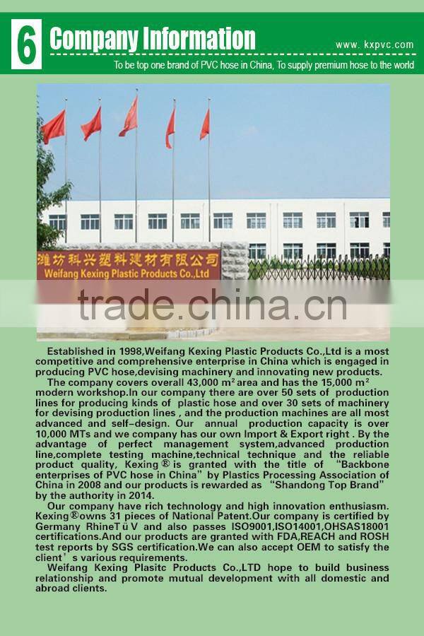1) The pvc composite hose for irrigation is widely used for conveying liquid and gas under high working pressure and also suitable for sucking powder under negative working pressure.