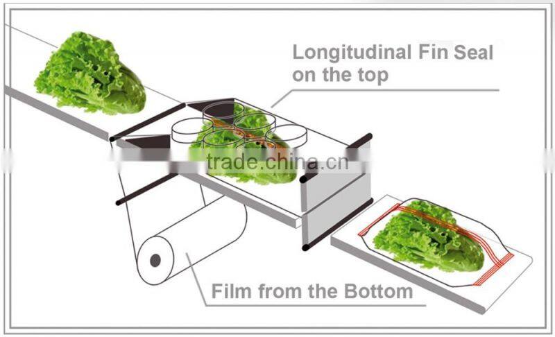 Machine is suitable for packing vegetables/fruits. It is widely used to pack the iceberg lettuce,cucumber,cauliflower,carrot,cos lettuce,leeks etc.