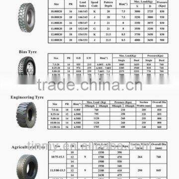 Tire:1.Type:Radial, Bias, Engineering, Agricultural