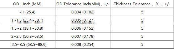 Outer diameter and wall thickness tolerance