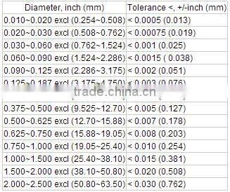 Permissible variations in diameter for rods and wires