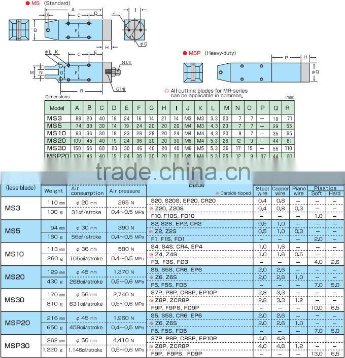 Cutting capacity: steel-wire φ1mm, copper-wire φ1.6mm, piano-wire φ0.5mm,