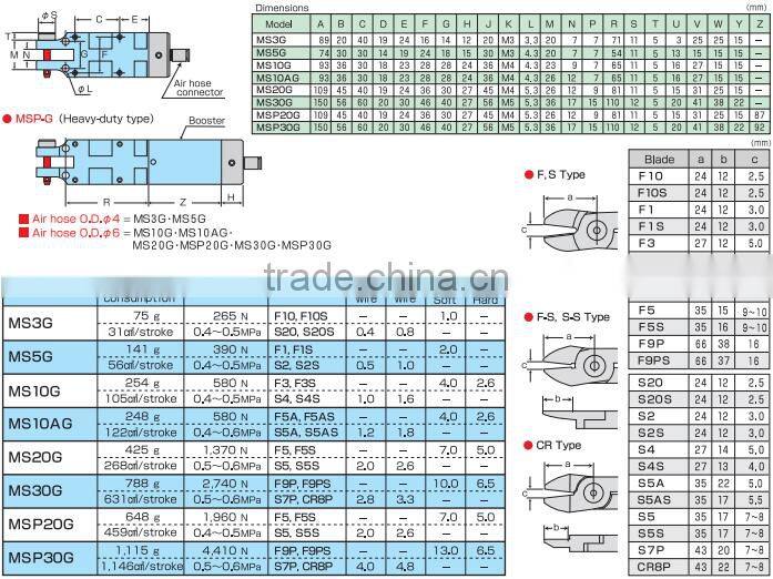 Cutting capacity: steel-wire φ2mm, copper-wire φ2.6mm, piano-wire φ1mm,