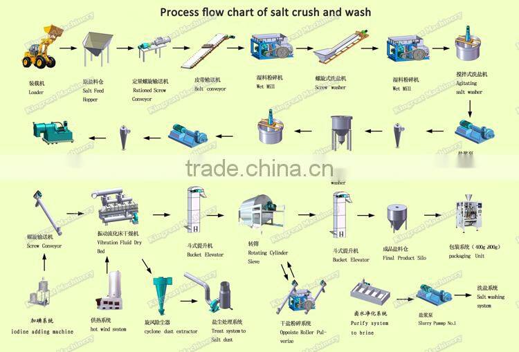 Salt production plant for salt crushing and washing is to produce salt with high quality. The equipment from raw salt to packing are all available.
