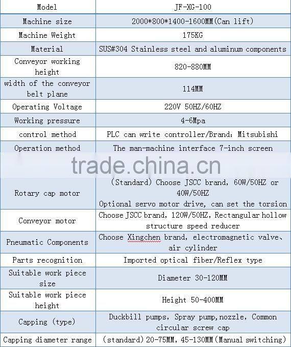 Mainly applied to different materials and different specifications of the cover, cap. Apply screw caps, theft, pressed into the cover. Capping head with constant torque, pressure can be easily adjusted. Compact structure, reasonable, and can be easily linked into line with other devices.
