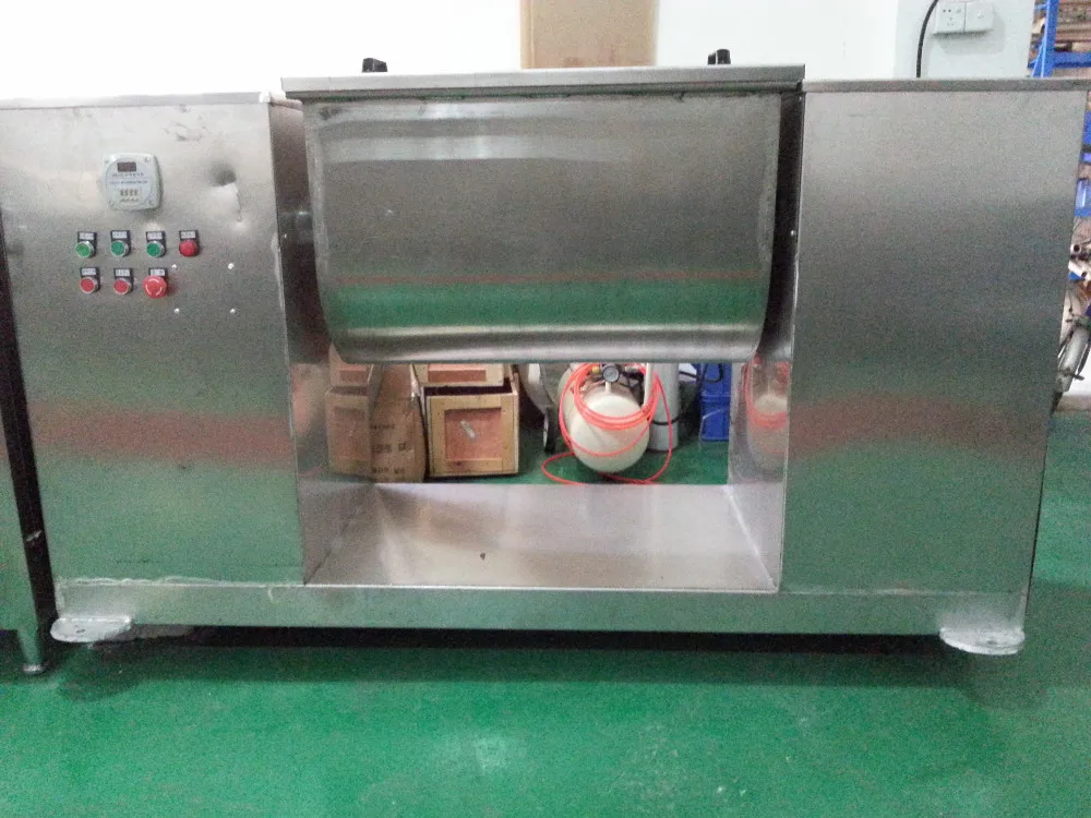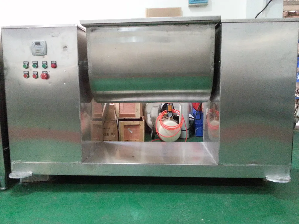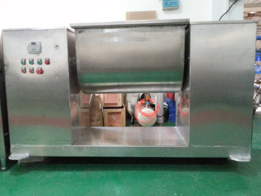 CH series Groove mixer is used for mixing power or damp raw material, make the different proportion of main material mixing, widely used in pharmaceutical, food, chemical industry, electronic industry such as dry powder mixture. Groove mixer in contact with the material are made of stainless steel blade and barrel body, small gap mixture no dead Angle, there are seal on both ends of the stirring shaft, can prevent diarrhea, material hopper adopts inching control buttons, easy to discharge, especially suitable for high uniform requirements, material proportion difference of material blending.