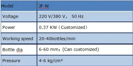 Connecting the compressor, the switch to open the gas and gas pressure regulator to 4-6KG / CM². Adjust the height of the bottle holder according to the height of the bottle. You will need to clean the bottle upside down in the wash bottle holder, press down in the end. This time, the washing nozzle clean air rises and opens the solenoid valve to the bottle blowing clean air radio, direct the set time and then stop, and finally picked up the artificial clean bottle.