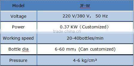 Connecting the compressor, the switch to open the gas and gas pressure regulator to 4-6KG / CM². Adjust the height of the bottle holder according to the height of the bottle. You will need to clean the bottle upside down in the wash bottle holder, press down in the end. This time, the washing nozzle clean air rises and opens the solenoid valve to the bottle blowing clean air radio, direct the set time and then stop, and finally picked up the artificial clean bottle.