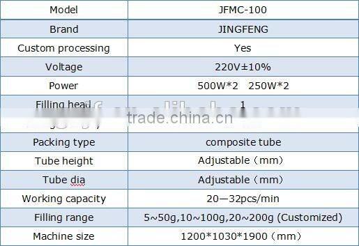 JF-MC Plastic (composite) hose and sealing machine is mainly used for a driving principle. Use segmentation mechanism driven turntable mounted fixture for intermittent operation, automatic filling and complete internal and external heating, sealing, play yards, trimming, finished withdraw a series of functions. Filling accurate measurement, the heating time is stable, adjustable, sealing beautiful appearance, neat, strong, health, trimming smooth.