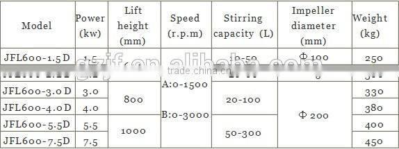 JFL series of lifting speed dispersion machine is specialized for various viscosity liquid and solid powder for low-speed mixing, dispersion, dissolution, mixing and high efficiency equipment