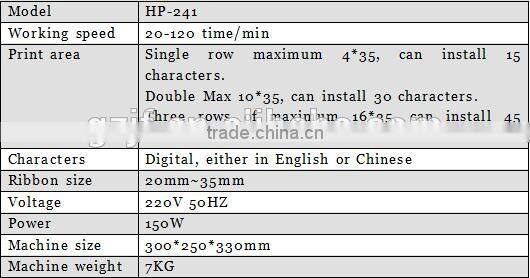 HP-241 food/beverage/medicine industry Ribbon Coding Machine