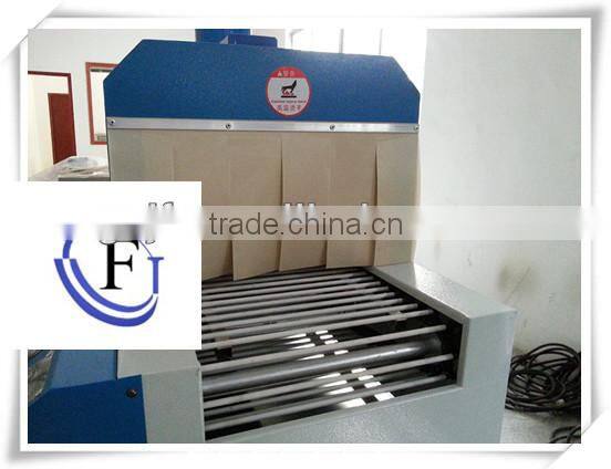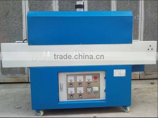 The furnace chamber through quartz heating tubes produce heat, the fan inside the furnace chamber is filled with the lower temperature uniformity of hot air from the furnace intelligent temperature control instrument control indoor temperature and keep a constant temperature , According to product shrinkage effect can be independently adjusted above and below the two heat pipe heat intensity, so that product contraction effect to perfection. Products through the chain-type conveyor belt into the furnace chamber, under high temperature shrink film shrink and close to the surface of the article.