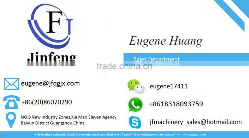 Guangzhou Jinfeng Light Industry Machinery Co., Ltd. is a manufacturer that produces cosmetic, pharmaceutical, chemical and dairy equipment. We undertake equipment design, manufacture, installation, maintenance, technical improvement support, technical consultancy and other services. Our main products are vacuum homogeneous emulsifying machines, reverse osmosis water treatment machines, automatic and semi-automatic filling machines and all kinds of stainless steel tanks. All of them are of reliable quality and good effect. We have more than ten years' experience in machinery manufacturing and our products have been entered into domestic and overseas markets. The diverse products with high quality can meet various needs of industries mentioned above.