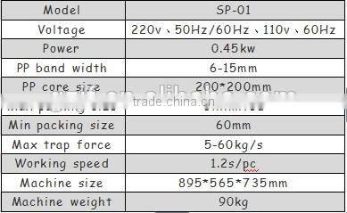 This machine is with polyethylene plastic bands tied materials, mainly for the commercial, postal, railway, bank, food, medical, publications, publishing industries cartons, wooden box, paper bag, cloth pack into the packing belt, the machine can complete the automatic take-up, sealing, cutting off and out of band. And have the function of automatic stop. High working speed, high efficiency, time and labor saving packing of high quality. There are high and low two luxury models.