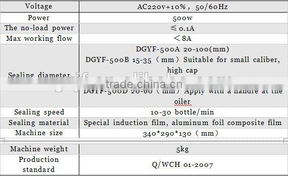 Machine adopts the principle of electromagnetic induction heating, by non-contact induction heating, the induction of membrane instantaneously generate heat to melt, firmly stick to the mouth of the bottle, to achieve the purpose of sealing mouth.