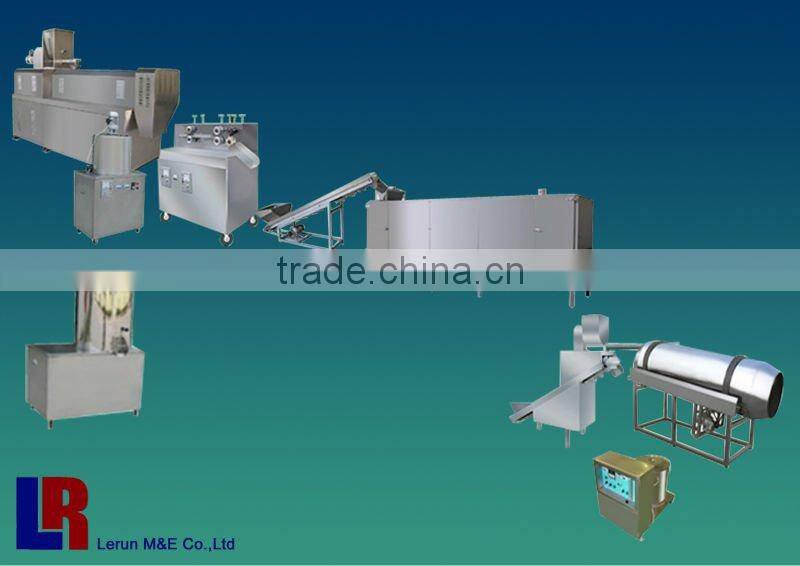 Mixer---Screw Hoister---Double Screw extruder----core filler----multi-functional shaper---hoister---Roasting oven---Flavoring Line
