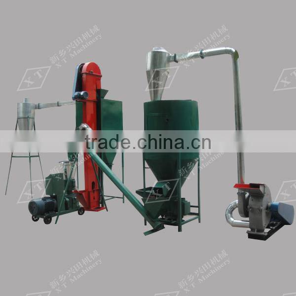 9FQ Series feed hammer mill for livestock is used in the pelleting process to take materials which are many different sizes and turns them into smaller more consistent size particles. In the hammermill, hammers strike the material over and over until it is small enough to fit through a screen. A large amount of air is also moving through the hammermill and it drags the material small enough to make it through the holes in the screen away to the next process.