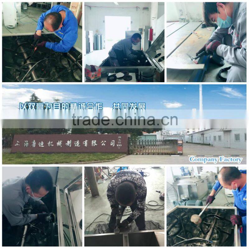 Vertical mixer is widely used on a variety of application in the industry such as food, chemical industy, pesticide, and other powder mixing ect. The application material can be: 304, 316L ect. The even mixing can be performed under 5min~20min. The spiral mixing blade inside the ribbon blender initiates a three-dimensional flow of the mixing goods; creating a helical upward movement on the periphery and downward flow in the centre. This industrial mixer guarantees very good mixing results and complete discharge. It can be used as ribbon blender for dry powder, wet suspensions as well as liquids, paste and dough.