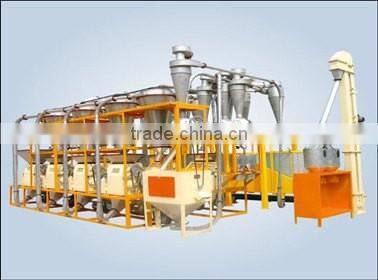Main equipment include : vibrating screen, classifying destoner, air blower, air suction duct, degerminator, germ extraction machine, polishing machine and flat sieve.