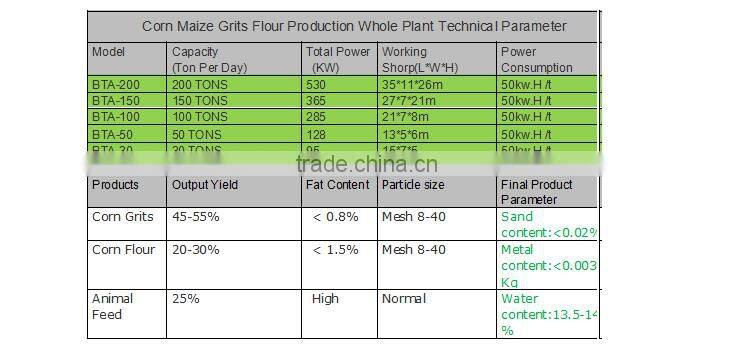 2.Yield rate: grade corn grits, grade corn flour 25-30%.