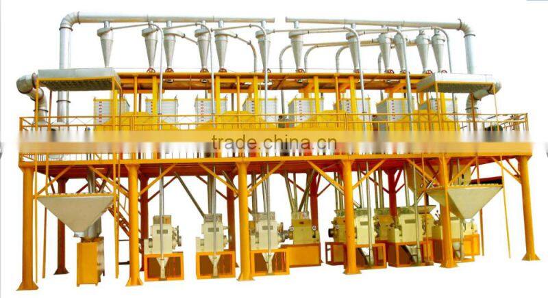 This 50-100 TPD wheat flour plant is steel constructed flour milling equipment of vertical structure. The sifters are located at the top of the plant, allowing the stock to pass downward through the sifters with the use of gravity rather than exclusively with the use of a pneumatic device. This decreases the power consumption and simplifies the wheat milling process. To increase the capacity for extraction, we also have developed several bearing mills, patented aluminum sifter screens and steel support frames.Many advantages are conferred by the steel construction of vertical structure: compact structure, convenient installation and operation, low costs and high efficiency.