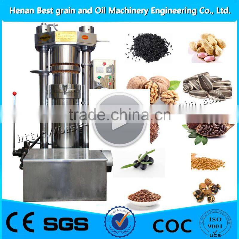 6YY-230 new improved design hydraulic oil press machine on the basis of the introduction of foreign similar products. Easy to use, easy to operate, high oil yield, is designed for pressing sesame, peanut, walnut, almond, pine nuts, tea seeds,cocoa beans/cacao and other high-oil crops professional equipment.
