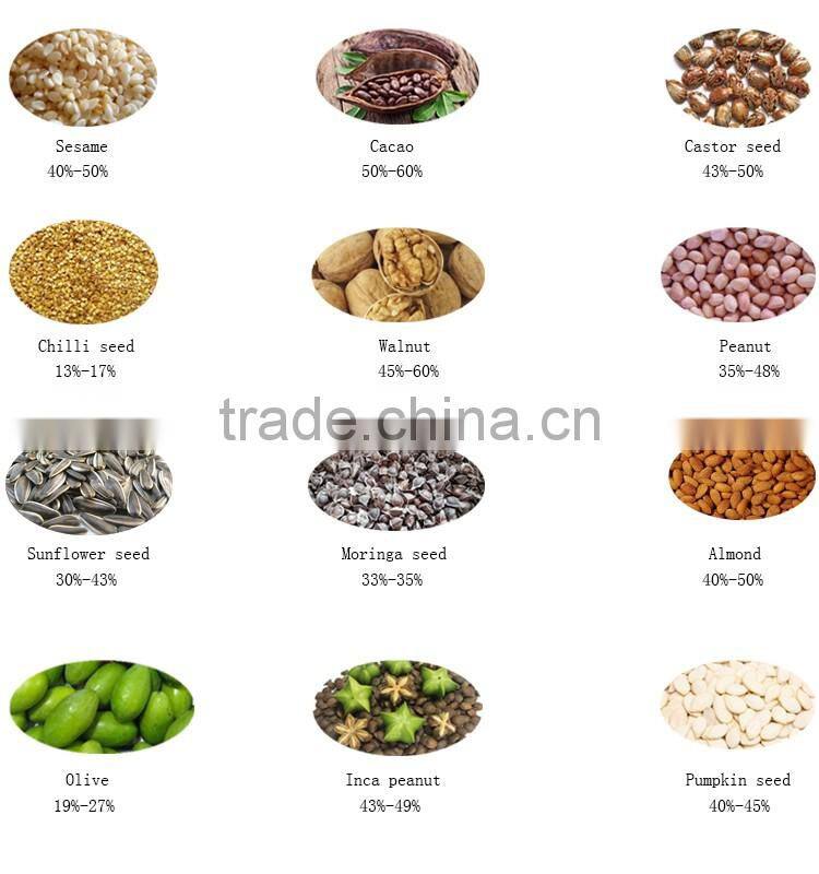 Widely application: Multi-function, can be used for processing palm fruit, flax seed, sesame seeds, peanuts, tea seed, rapeseed, soybean, oil sunflower, cocoa butter etc. more than 20 oil crops. 3 level press technology, oil can be squeeze out completely only once.