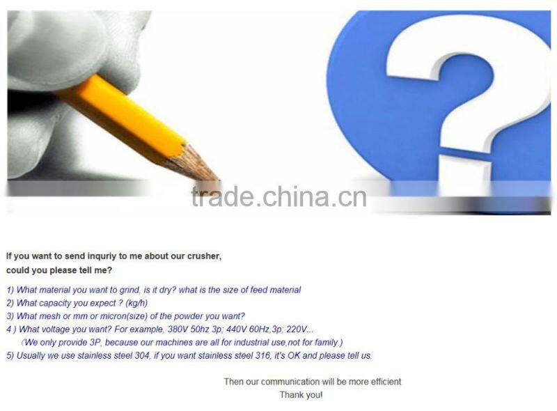 3) No need screen in grind chamber, change powder size by changing speed.
