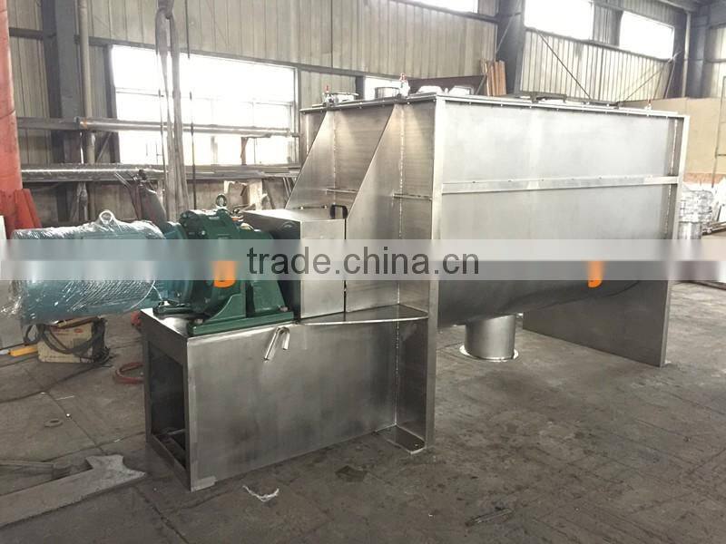 Horizontal ribbon mixer comprises of U-shape barrel,transmisstion parts and ribbon agitating blades which usually have doubleor triple layers with outside screw gathering material from side to center and inside screw transmitting the material from center to sides to form convection mix.