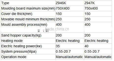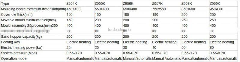 The technical parameters of the Z95 series full automatic shell core machine: