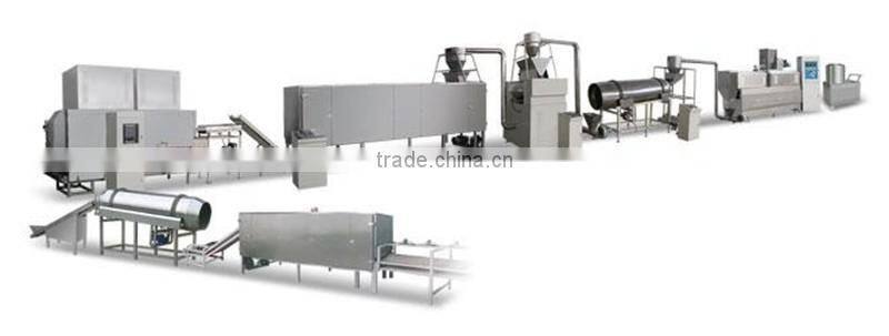 2. Adopting speed-adjusted converter on feeding system, extrusion system and cutting system. Food grade stainless steel twin screw feeding machine, stable materials feeding in the whole food process.