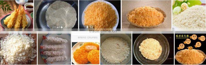 2.Raw material: for bread crumbs production. It is from powder for wheat flour to bread crumbs automatically. No bread produced during the whole process. So no bread crust appeared. The final product is bright white and with good texture.