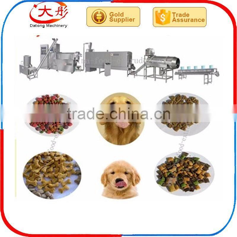 The pet feed processing line uses meat meal, corn powder,soya meal and other grain powder as main materials to make the pet food, like dog,fish,bird food etc with different shapes and taste by changing the dies, fornulations, the pet food are made under high temprature condition, and popular to the pet food market.