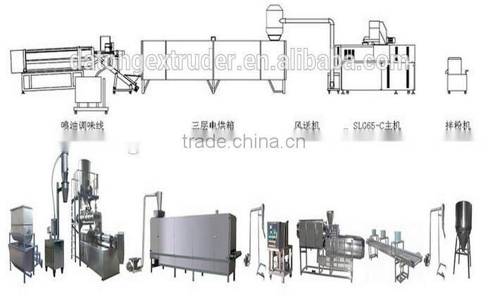 3.Flow chart:Mixing system---Extrusion system----Drying system----Flavoring system--Packing system