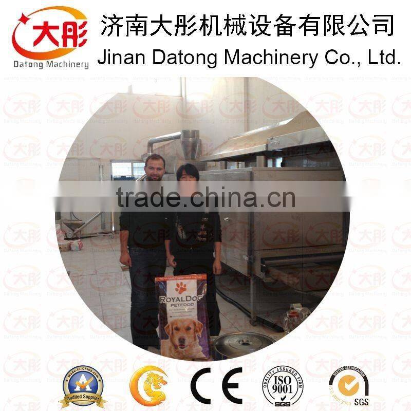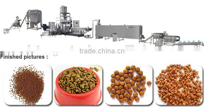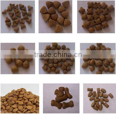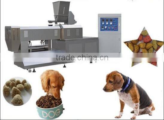 Dog food making machine, animal pellet extruder line-- Uses meat meal, fish meal, corn powder, soya meal and other grains powder as main materials to make the pet food, such as dog, cat, fish, bird food etc. With different shapes and tastes by changing the dies and formulations. The pet foods are made under high temperature condition, and popular to the pet food market.