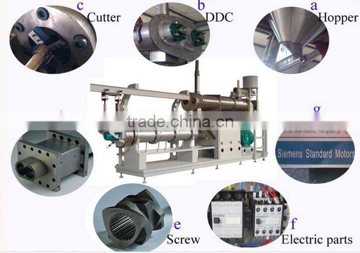 2. Adopting speed-adjusted converter on feeding system, extrusion system and cutting system. Food grade stainless steel twin screw feeding machine, stable materials feeding in the whole food process.