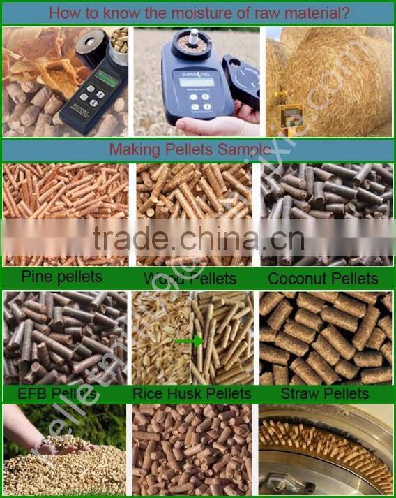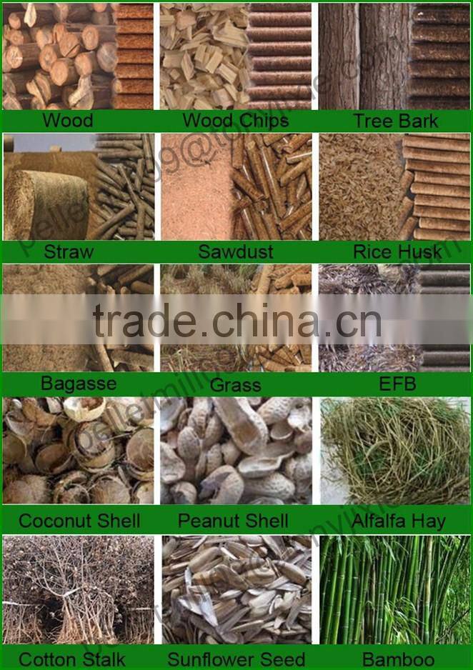 Raw Materials: wood, trunck, branch, sawdust, straw, rice husk, bamboo sawdust, peanut shell, bagasse waste, alfalfa, a variety of crop stalk and other agricuntural waste, etc. If you are not sure how your materials perform in pelletizing, you can send us some sample of the material and we can help you test the pelletizing process and send you the final products.