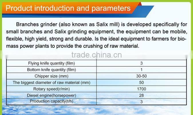 4.Branch grinder can be disposable timber, tree trunks, branches, straw, bamboo, wood, twigs, leaves, bark, bamboo, bamboo, feed, chemical raw materials crushed into chips or sawdust-like material in one time. Crushed material widely used in the sawdust, particle board, fiberboard, paper and pulp, charcoal raw materials, organic garden fertilizer, which is suitable for small and medium sized enterprises or individuals timber operators.