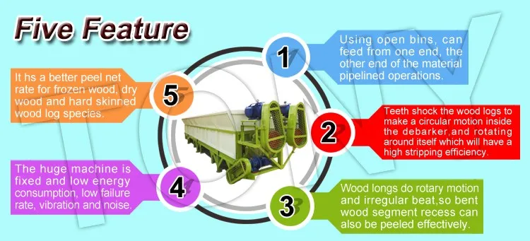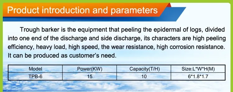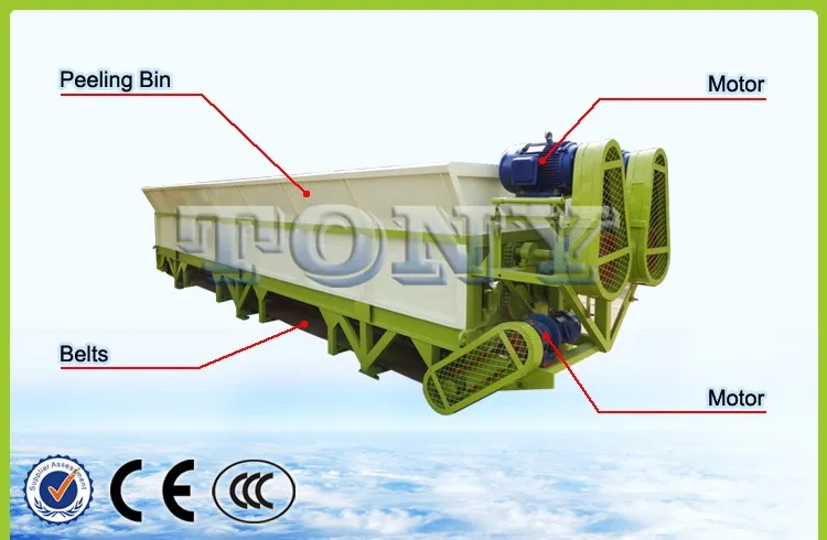Tony manufacture horizental wood debarker wood log peeling machine is suitable for a variety of wood peeling equipment. It is widely used in pulp mills, paper mills and wood chip manufacturers.The raw material peeling net rate is more than 95%. Reasonable structure, easy to operate, safe, reliable, high efficiency.