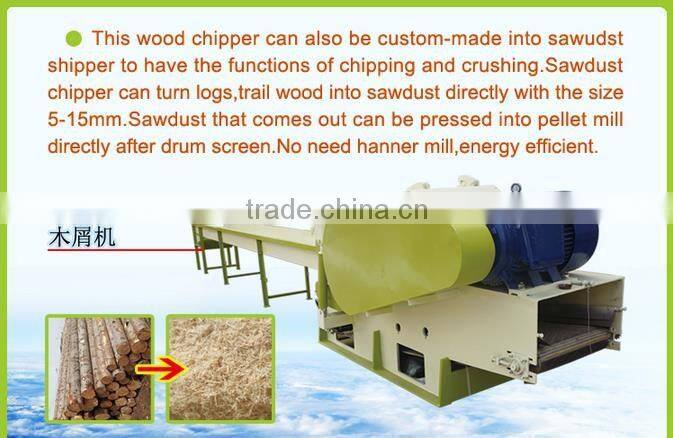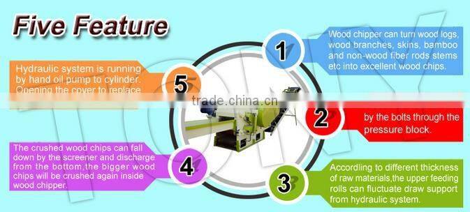 The wood chipper structure is advanced , cutting sheet material of high quality raw materials adaptable light , easy operation and maintenance . The main raw material is cutting small trees , timber harvesting, processing residues ( such as branches, twigs ,skins, planks, logs core , waste veneer , etc. ) , can also be used to cut non-wood raw materials ( such as sugar cane , reeds, bamboo etc. ) .