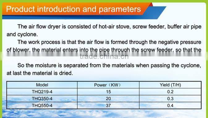 1) Air Flow Pipe Dryer is equipped one fuel boiler,inlet,steel pipe,exhaust blower(fan),cyclone.