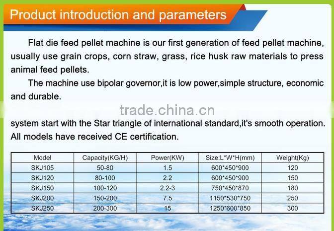 1. The SKJ Series flat die pellet machine with the volume 100kg to 4 ton per hour.