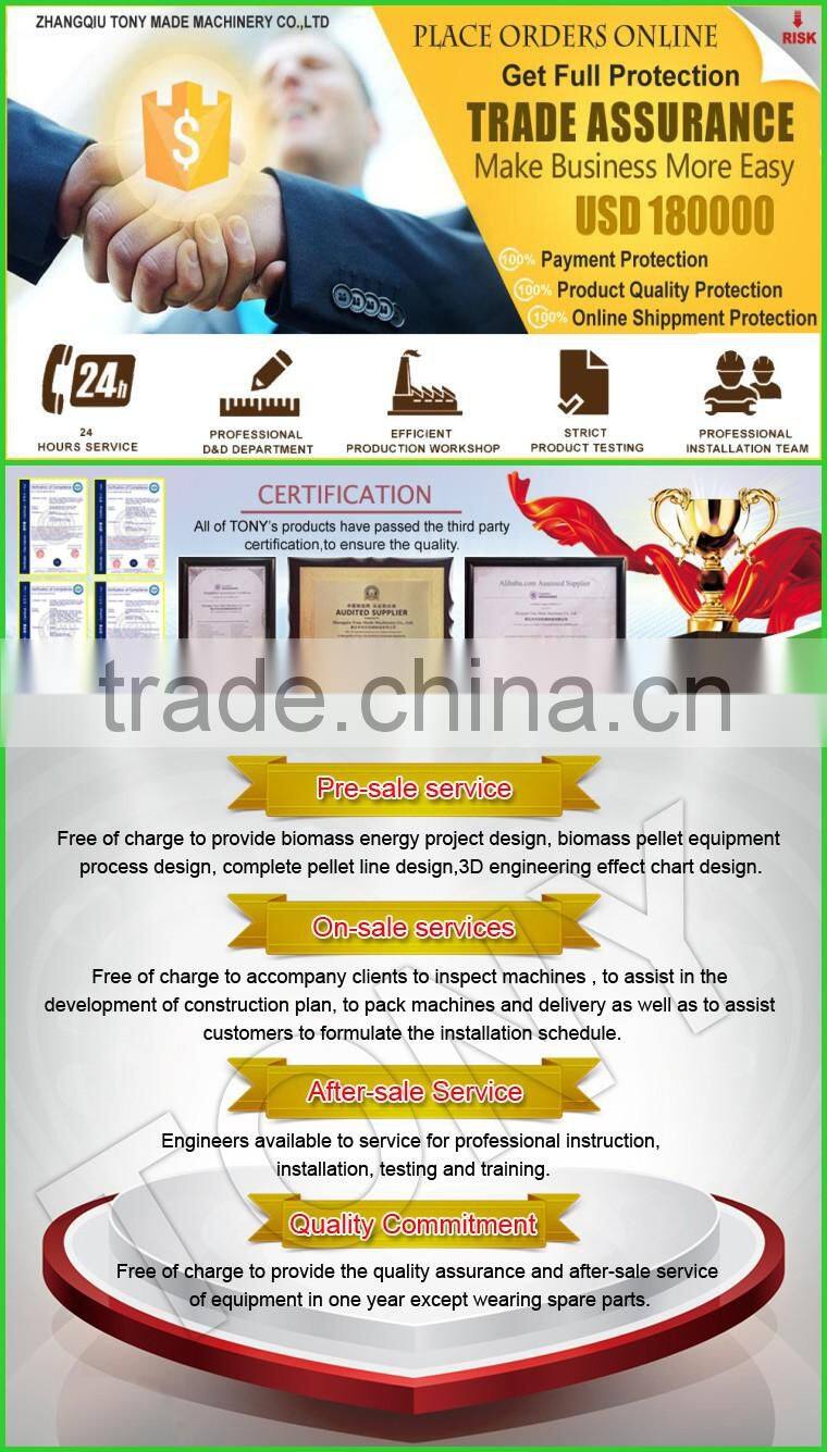 ZHANGQIU TONY MADE MACHINERY CO., LTD is a professional manufacturer and exporter engaged in the research, production, sale and service of Biomass wood pellet line, wood pellet mills, feed pellet mills, grinding equipment, crushing equipment, drying equipment, cooler and other screening, conveying equipment.