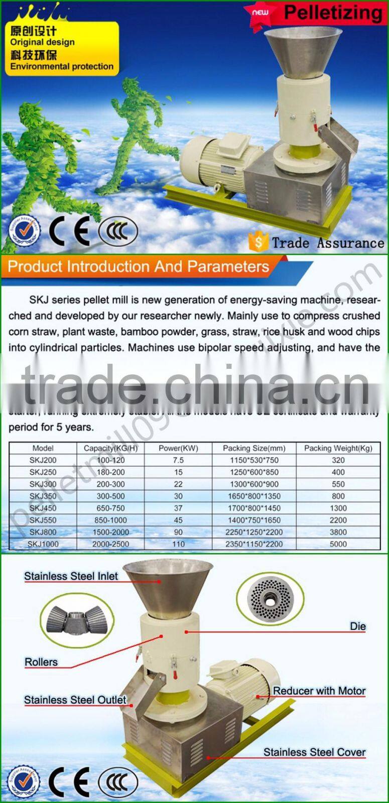 1.The SKJ Series flat die pellet mill and feed pellet mill with the volume100kg/hour to 4 ton/hour