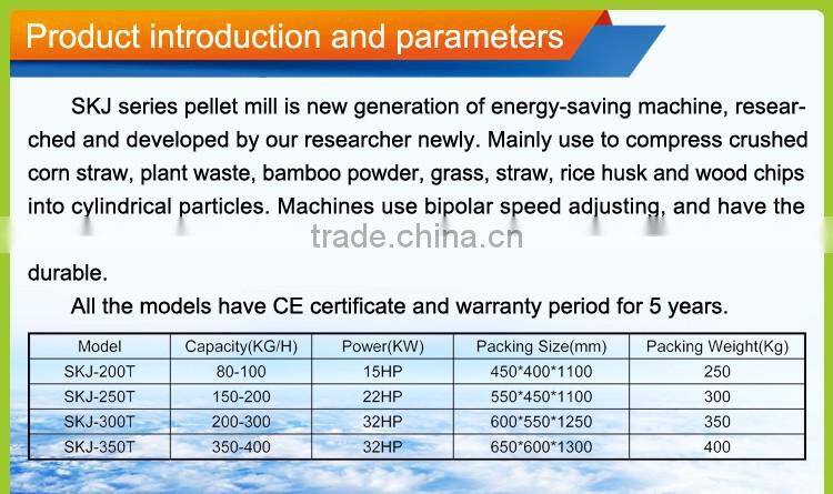 1.The SKJ Series flat die pellet mill with the volume 100kg per hour to 2500kg per hour.