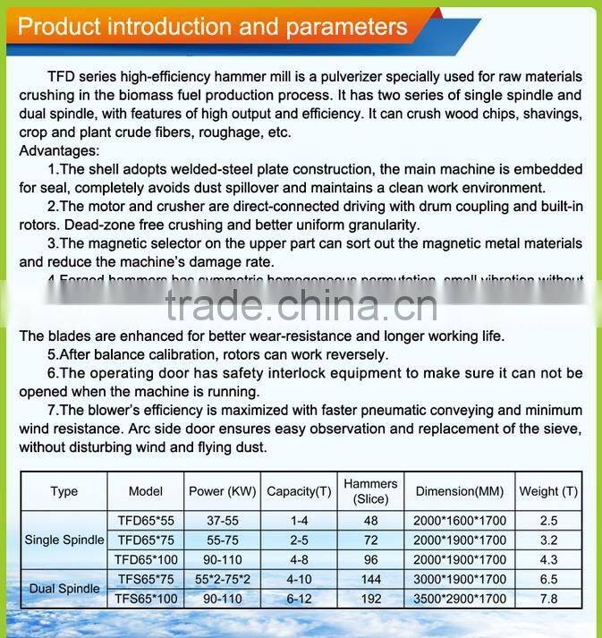 CE ISO New Signle Shaft High Efficiency Wood Shavings Hammer Mill