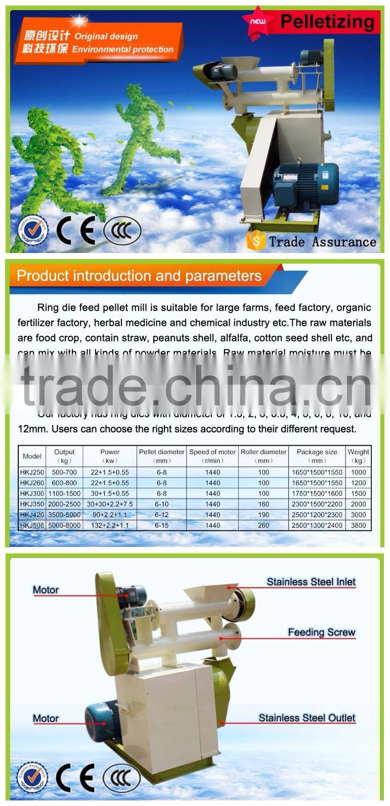 1.The SKJ Series flat die pellet mill and feed pellet mill with the volume100kg/hour to 4 ton/hour