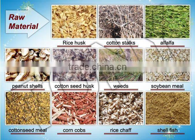 1)It has wide range of materials, It can be grain like corn, wheat and the crushed waste from agriculture.such as sawdust, wood, straw, rice husk, bagasse, cotton stalk, peanut shell, bamboo, empty fruit branch, pulverized coal, waste paper, cottonseed skins, weeds, crop stalks and other plant wastes, especially low bonding and unformed materials and other can be making into biomass pellets without any additive.