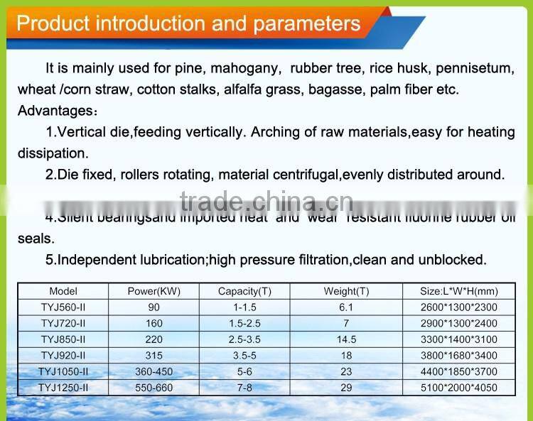 2.TheTY Series ring die pellet mill with the volume 800kg to 5 ton per hour.